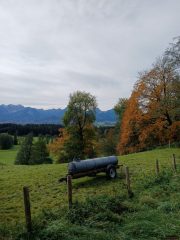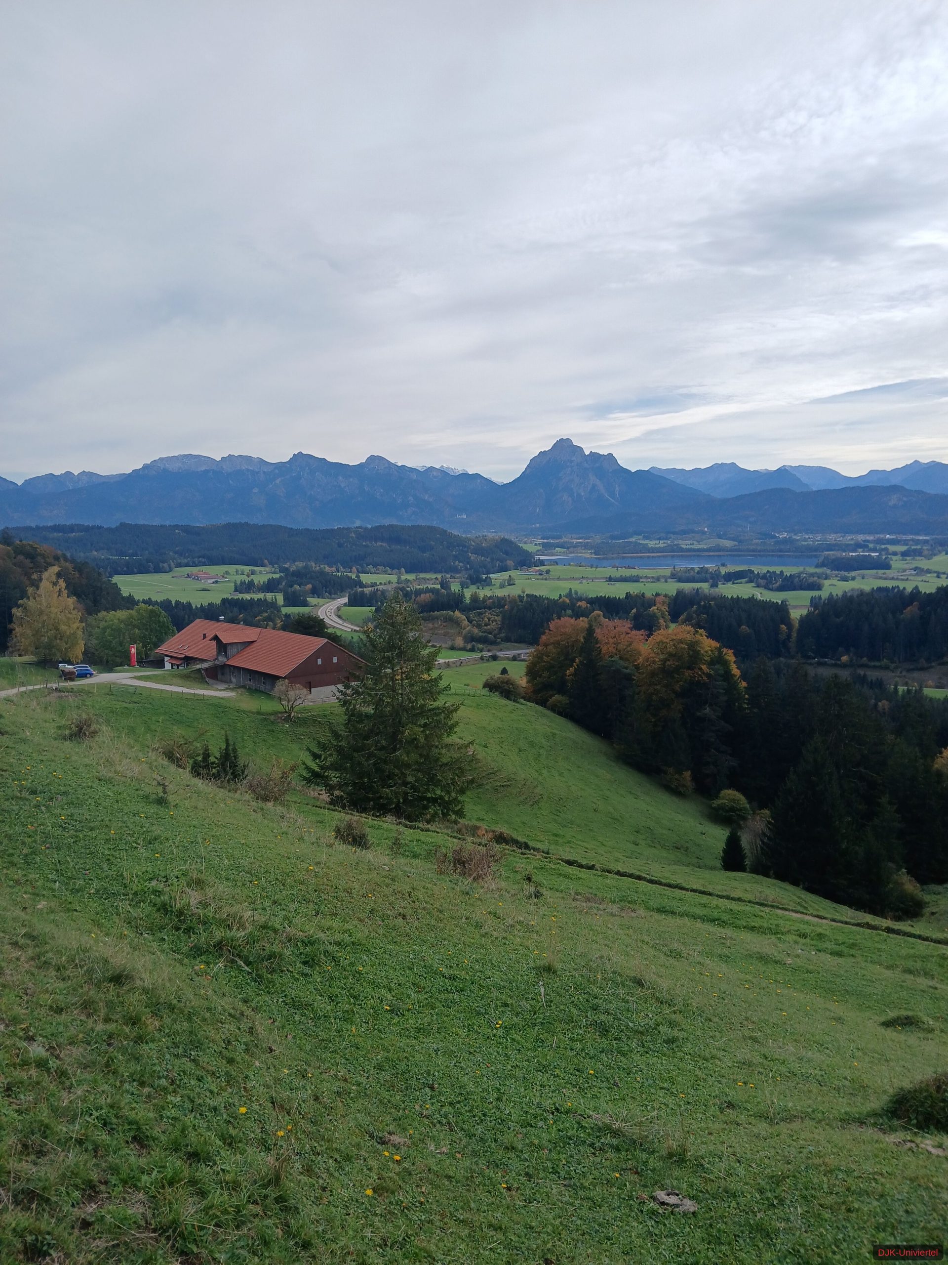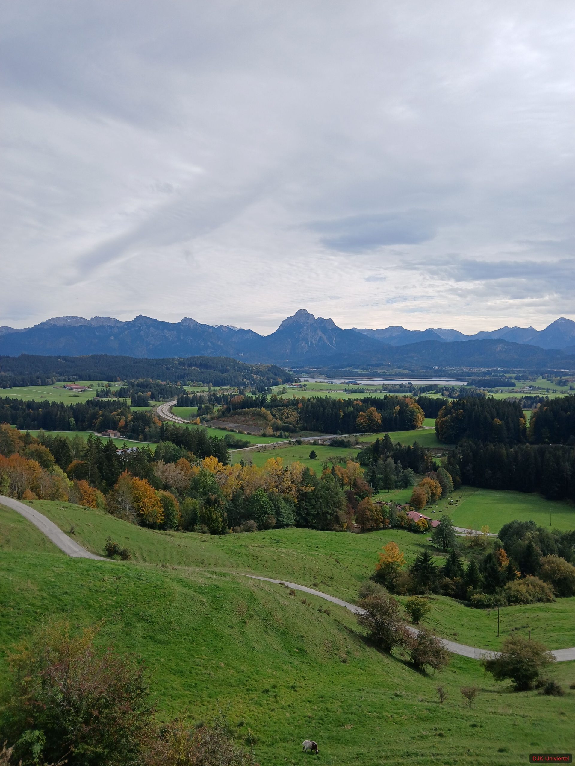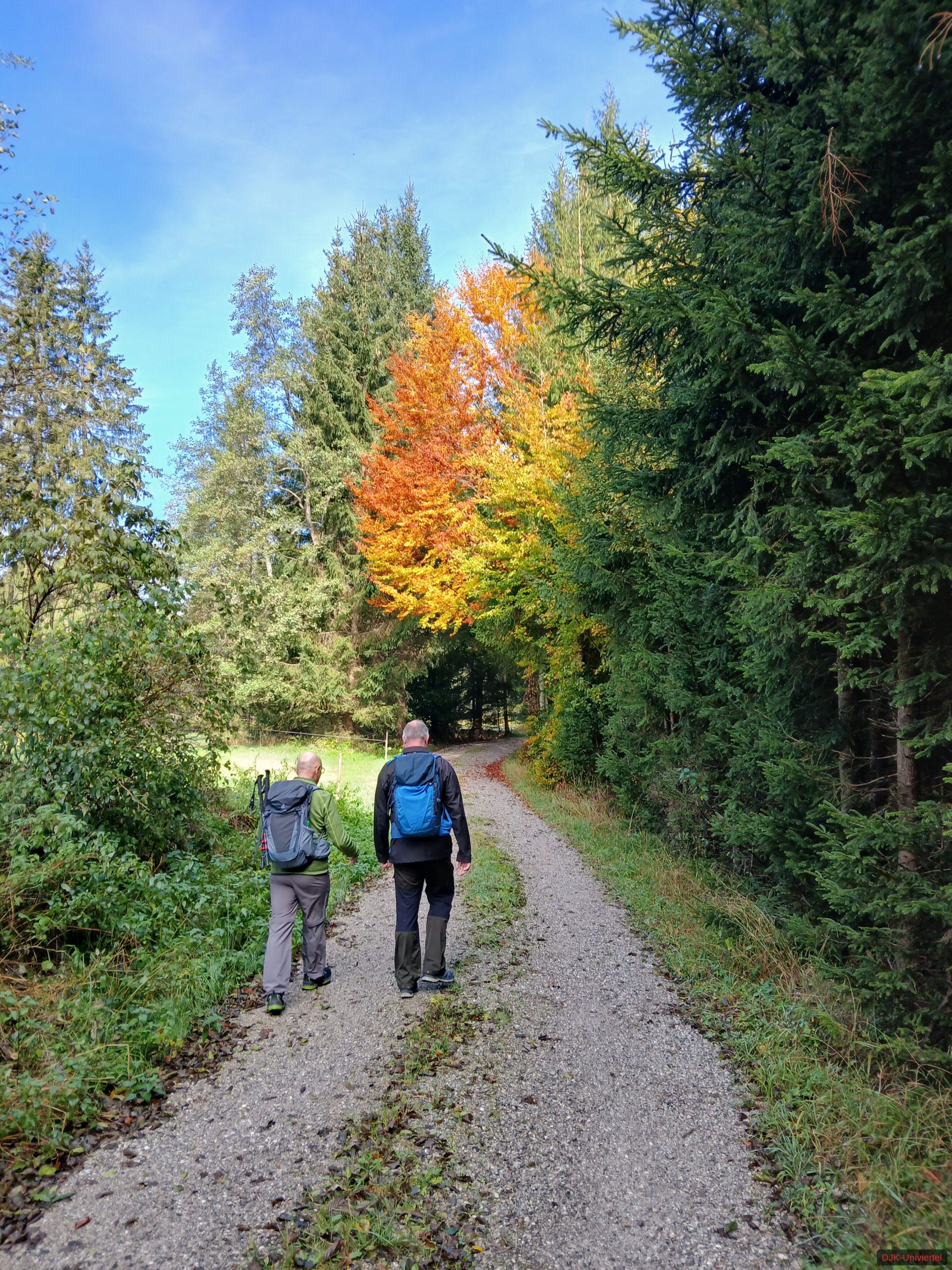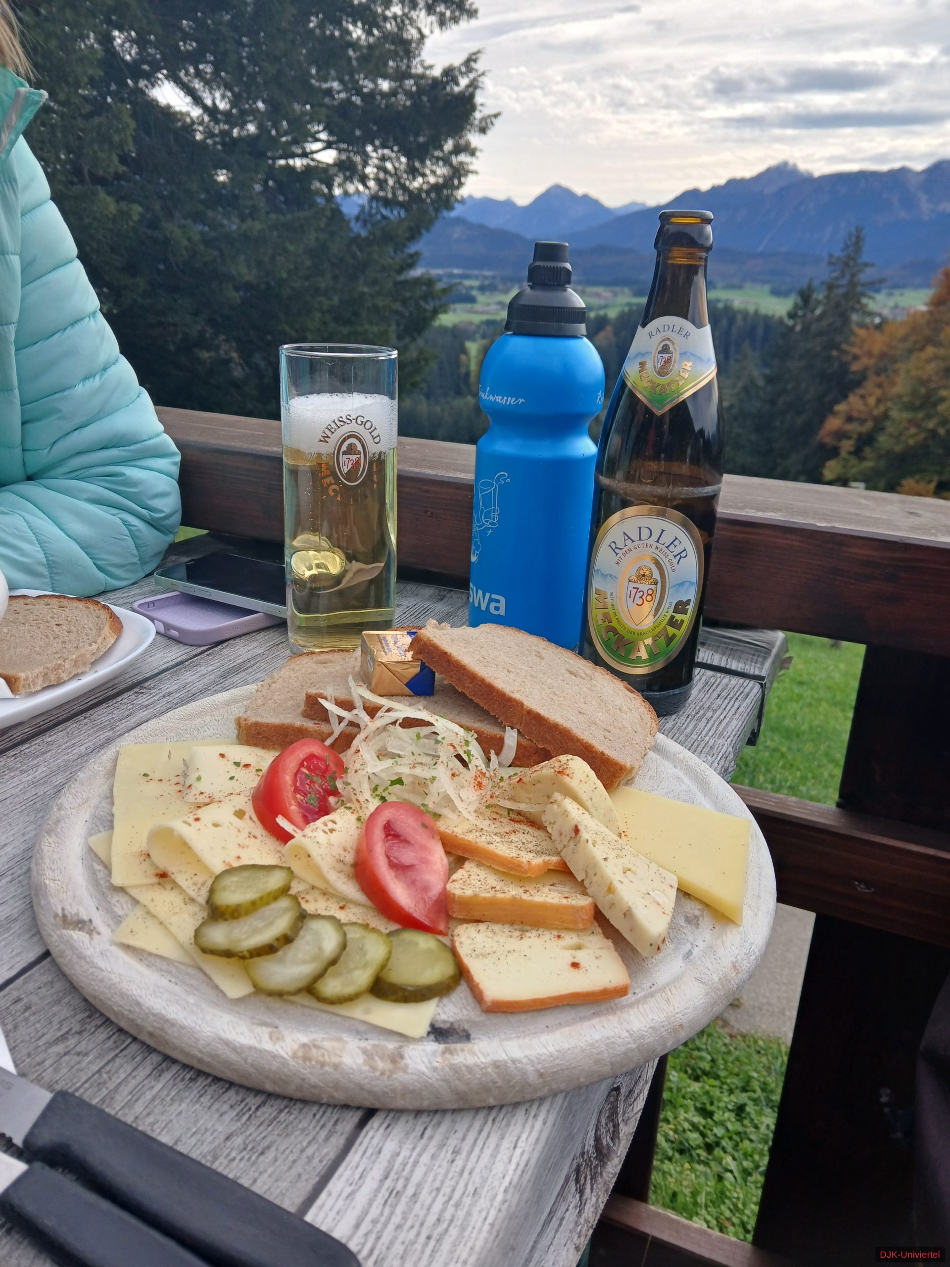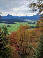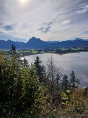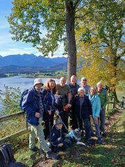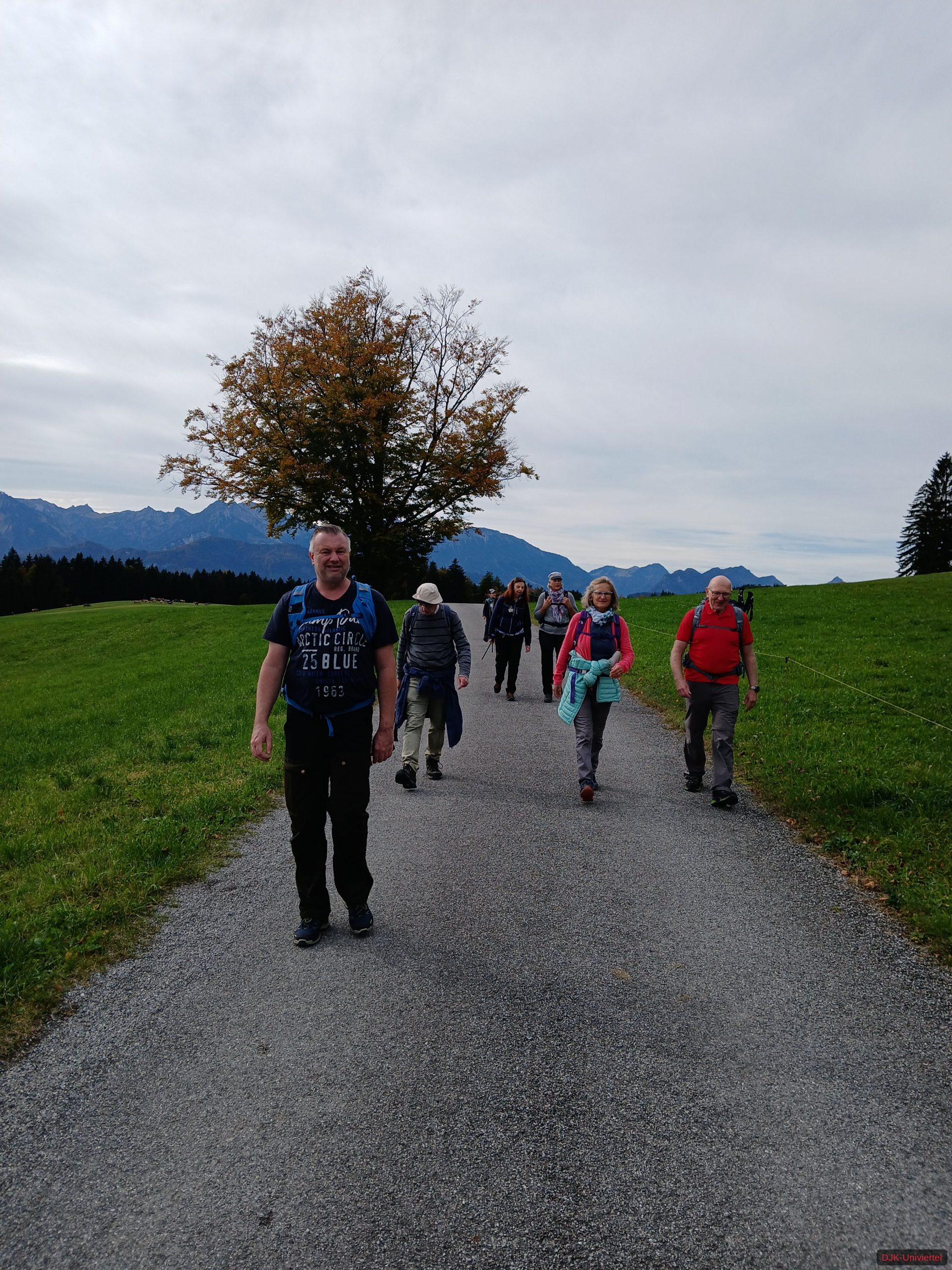 Neun Wanderinnen und Wanderer erlebten einen herrlichen Herbsttag. Die Anreise ging gemeinsam mit Bahn und Bus zum Hopfensee im Allgäu. Von dort wanderten wir über die Burgruine Hopfensee munter bergauf und bergab bis auf den Senkelekopf mit 1030 Meter Höhe. Dannach ging es zu einer Einkehr auf der Alpe Beichelstein. Wir wanderten in einer Postkartenidylle. Von der Alpe ging es noch eine Stunde nach Seeg zum Bahnhof. Insgesamt waren es 15km Strecke und ca. 500 Hm.