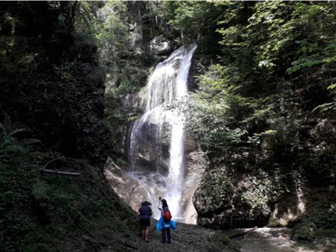 Durch diesen wunderbaren Tobel, der auch mit ein paar Höhenmetern verbunden war, erreichten wir den sehenswerten Niedersonthofener Wasserfall. Auf einem anderen Weg ging es dann teilweise über schöne Wiesen mit schönen Ausblicken zurück in Richtung See. Am Weg dorthin haben wir ein gemeinsames Picknick auf einer schönen Waldlichtung gemacht.